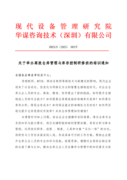 首頁 > 新聞中心>公司動態>關于舉行高效倉庫管理與庫存控制研修班的培訓通知