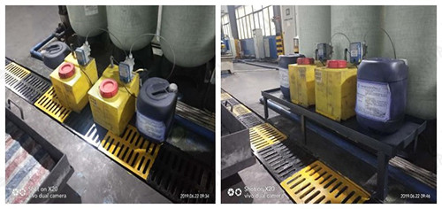 改善前 因超純水藥劑桶無(wú)合適空位擺放,一直占用攬溝蓋板,給攬溝清理帶來(lái)不必要的麻煩