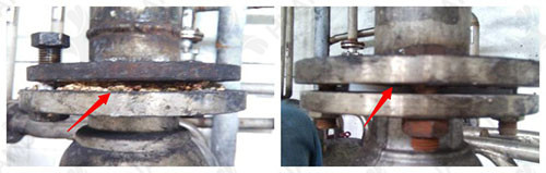 物料管路法蘭存在物料滲漏現(xiàn)象,經(jīng)過多次更換石棉圈,效果不理想。